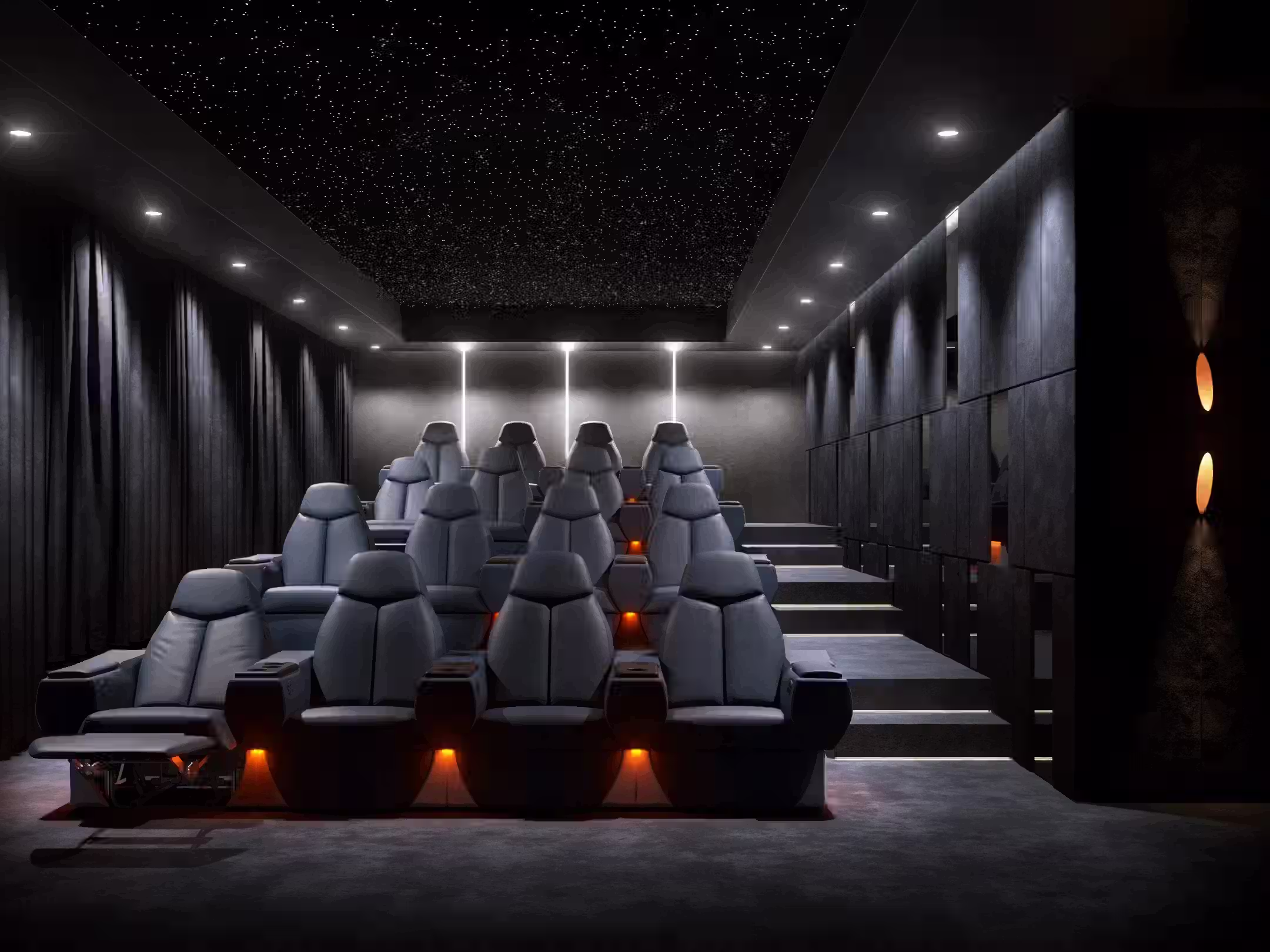 Handcrafted, motorized seating that merges German engineering with smart-home integration. Fully customizable ergonomics designed for long-form immersive viewing.